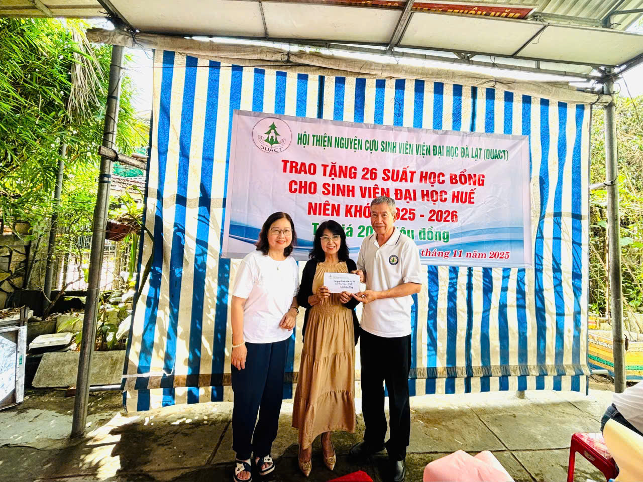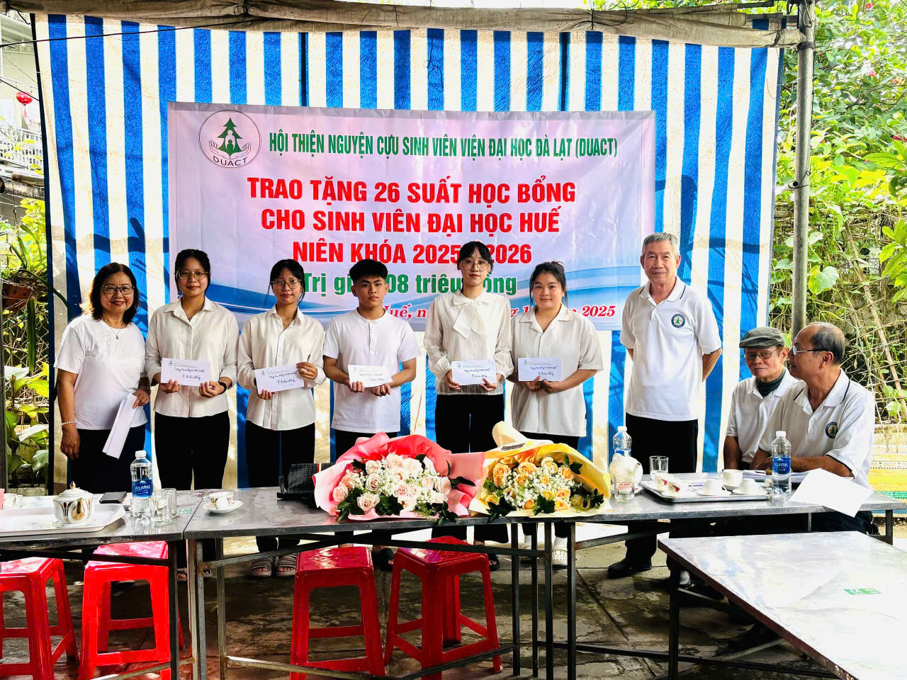 Hôm nay CN 9/11 - một ngày đẹp trời nắng ấm đoàn cựu SV Thụ Nhân & DUACT Đà Nẵng & Huế (cựu SV ĐH Viện Đà Lạt) đến tp Huế trao tặng 26 học bổng trị giá 8 triệu/hb dành cho 26 sv hoàn cảnh khó khăn đạt kết quả học tập tốt trong Nk 2025-26. Các em SV được nhận HB rất vui mừng xúc động nói lên cảm nghĩ của mình đồng thời chia sẻ kinh nghiệm trong học tập và cuộc sống khó khăn làm thế nào để vươn lên và sử dụng hữu ích học bổng được nhận , đó cũng là những suy nghĩ chân thành của các em.