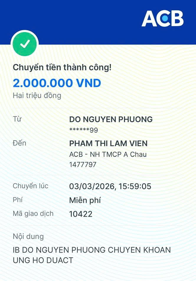Con đính kèm một chút tấm lòng của chị em con gởi đến Quý Quỹ.